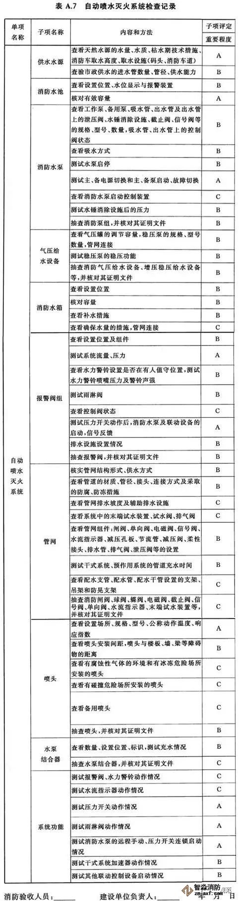 6.2.1子項按其影響消防安全的重要程度分為A(關鍵項目)、B(主要項目)、C(一般項目)三類,分類標準如下: