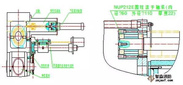 本方案中,突出的關鍵技術一是剛性芯軸通過兩個NUP21E軸承的巧妙布置后的懸置固定,徹底解決了剛性芯軸在筒體卷制過程中瞬間偏轉而使剛性芯軸提前失效最終導致設備無法正常卷制的致命技術問題。