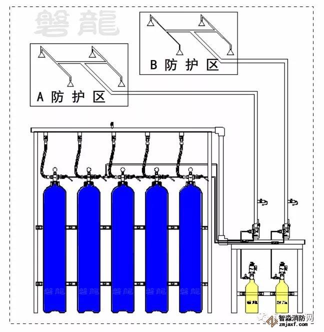 2、使用溫度低于臨界溫度,但飽和蒸氣壓較高的滅火劑,可以依靠自身壓力完成滅火劑輸送,也可以采用自壓式氣體滅火系統(tǒng)。